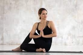 - Place the opposite elbow outside the bent knee and twist your torso.