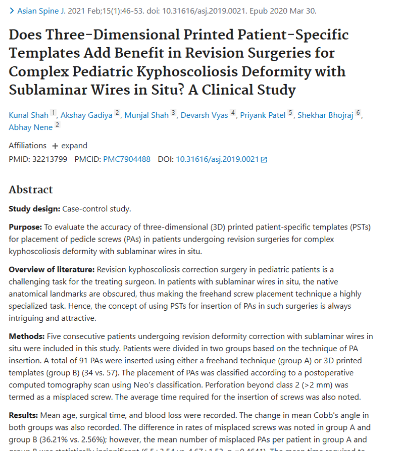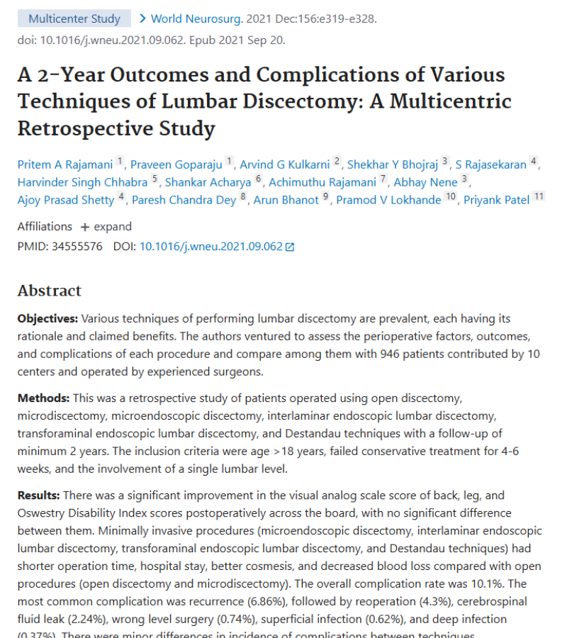 Spine Research & Publications by Dr. Shekhar Bhojraj & Team