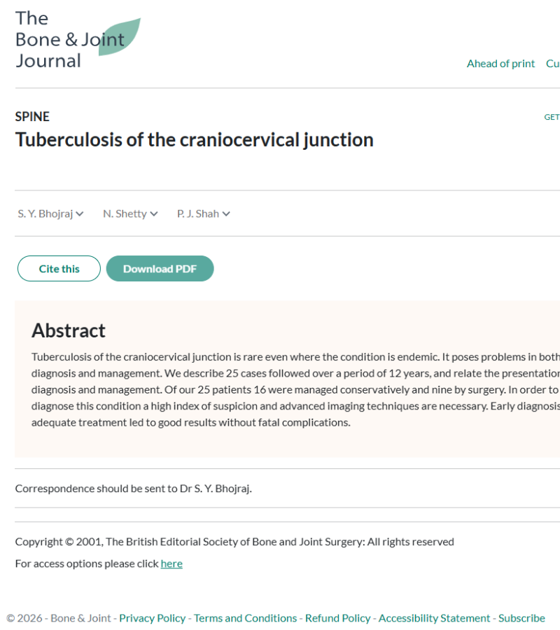 At We Are Spine Mumbai, our team actively contributes to global spine research through peer-reviewed publications and clinical studies. Led by Dr. Shekhar Bhojraj, these publications reflect decades of expertise in spine surgery, scoliosis, tuberculosis, and complex spinal disorders.